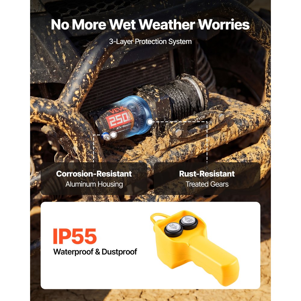 1134 kg-os elektromos csörlő, 12 V DC ATV/UTV csörlő Φ4,8 mm x 12 m szintetikus kötéllel és vezetékes távirányítóval, IP55 vízálló, alumínium ház, vezetőfül rögzítőlemez ATV vontatásához, fekete | Autó-motorkerékpárok - Jovotech.hu