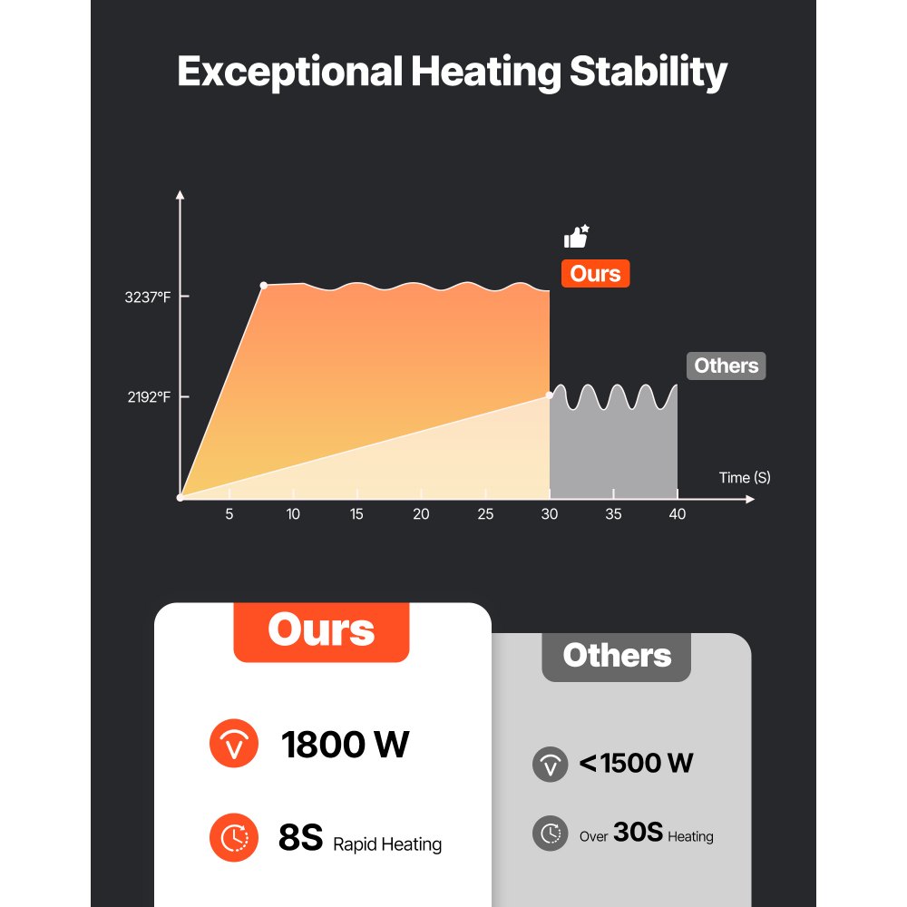 Gyors szétszerelés: A csavarmelegítő 1800 W teljesítményt kínál, gyorsan, 8 másodperc alatt felmelegíti a fémet a kívánt hőmérsékletre. A melegítési folyamat 25-40 másodpercet vesz igénybe, biztosítva az egyenletes melegítést. Nem hoz létre lángot, és nem igényel vízhűtést.