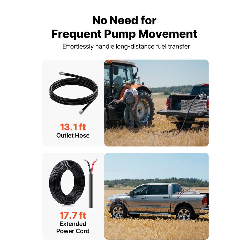 Teljes készlet tartalma: Ez a 12 V-os benzinszivattyú használatra kész állapotban érkezik, 13 láb hosszú kimeneti tömlővel, 14–37 hüvelykes állítható szívócsővel és tápkábellel. Minden, amire szüksége van a hatékony és problémamentes üzemanyag-feltöltéshez a munkahelyen.