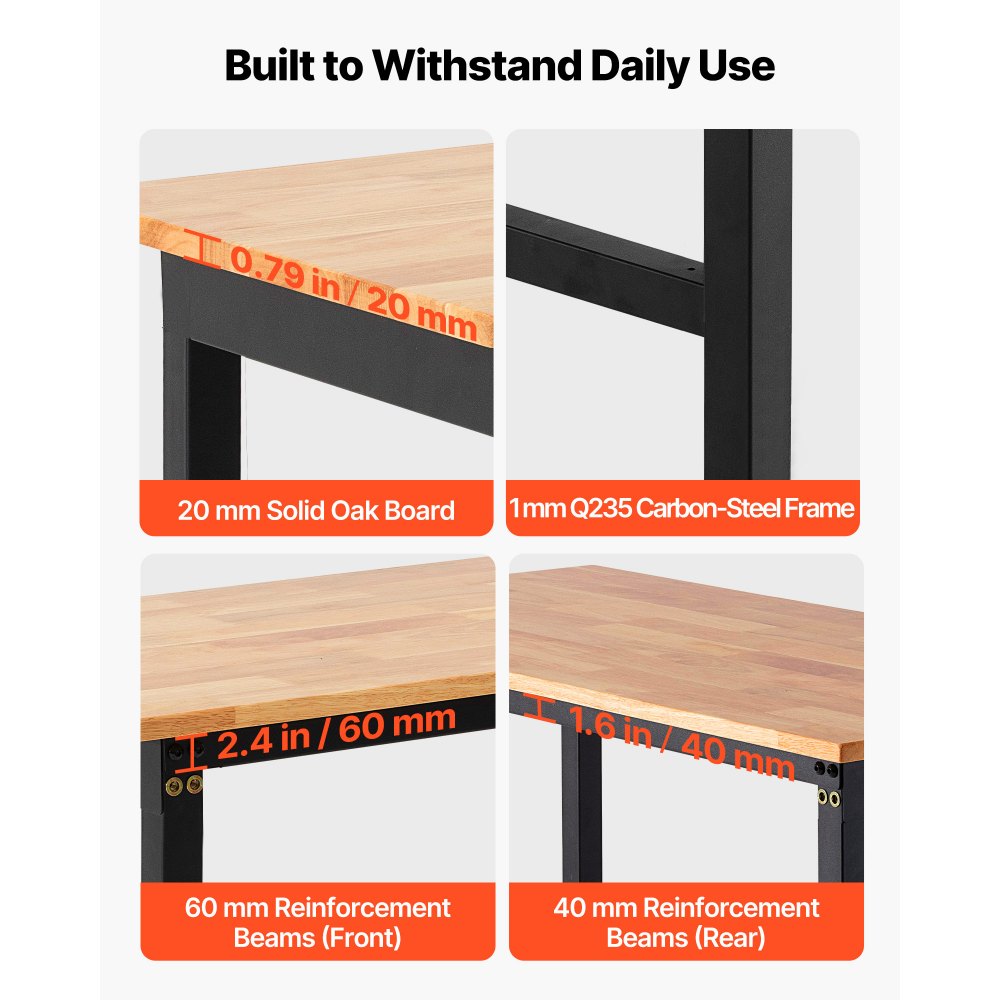 állítható munkapad kerekeken, 680 kg teherbírás, 122 x 60 cm tölgyfa munkalap 72,5-107,5 magasságállítással, strapabíró keményfa munkaasztal garázsba, műhelybe, otthonra, irodába | Barkácsbolt - Jovotech.hu