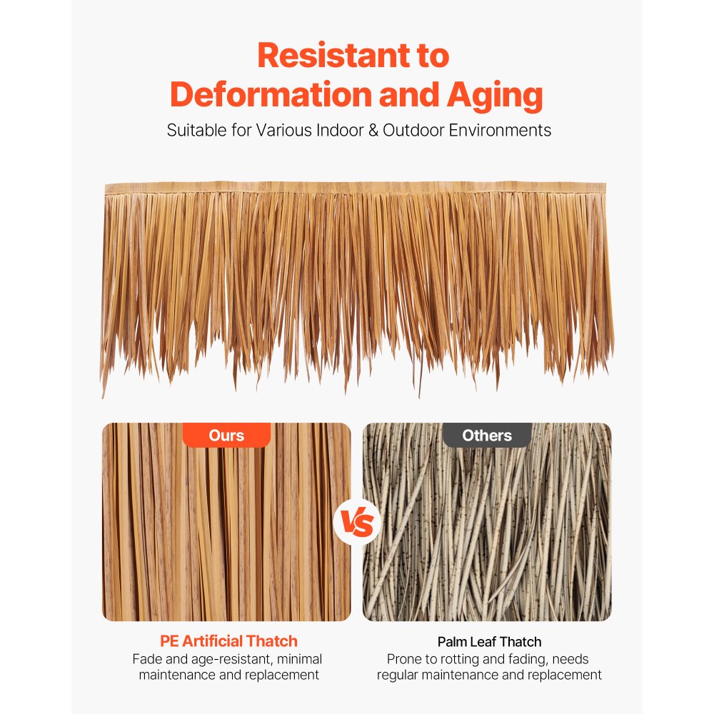 Természetes és élethű: Ez az 1,6 × 16,4 láb (0,5 × 5 méter) méretű műnádtető szakértők által lett elkészítve, hogy a természetes nádtető hiteles rétegzettségét és textúráját reprodukálja. A változó levélhosszúságok a természetet utánozzák, nem pedig minőségi problémák – biztos lehet benne, hogy a valósághűséget hivatottak fokozni.