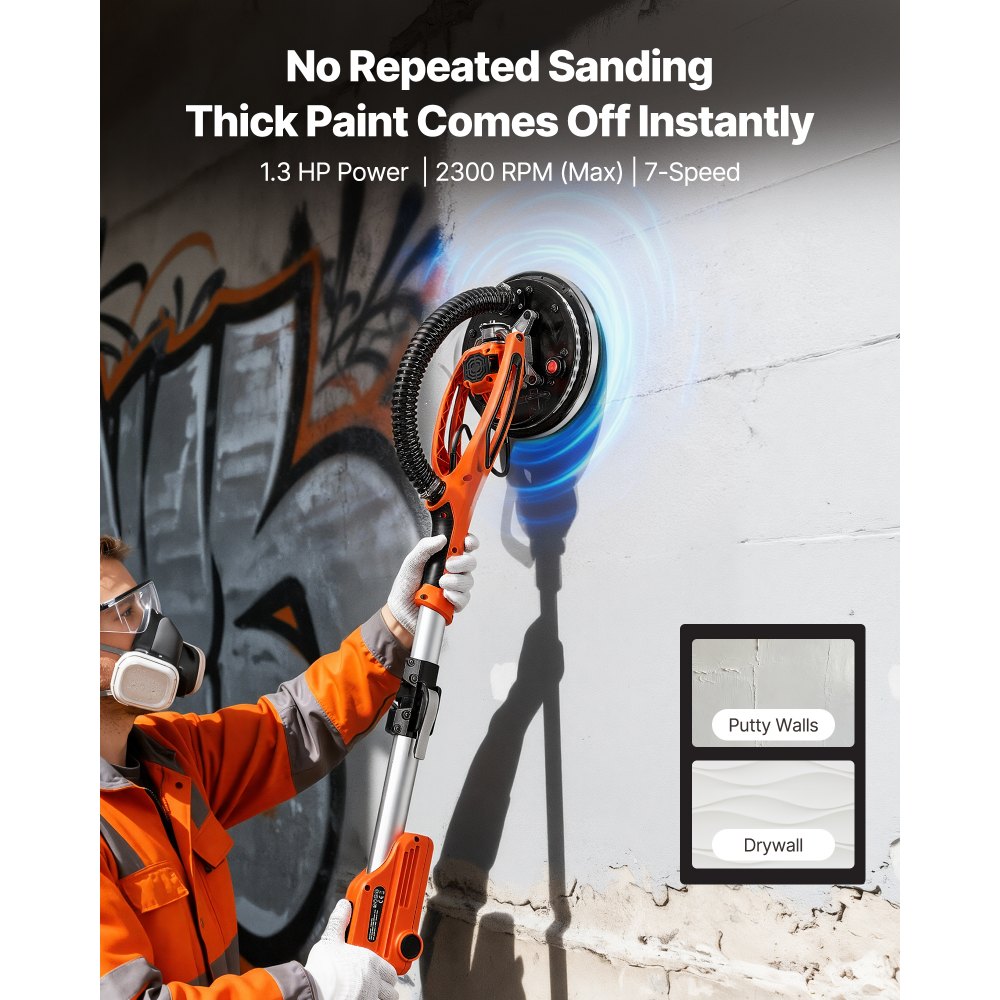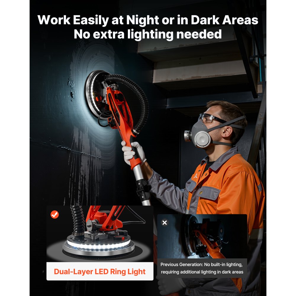 gipszkarton csiszoló, 950 W-os elektromos gipszkarton csiszoló, pattogatott kukorica mennyezet eltávolító szerszám 7 változtatható sebességgel 1000-2300 fordulat/perc, kétszintes LED lámpával, összecsukható és kihúzható fogantyúval, 15 csiszolókoronggal, portömlővel | Építés és szerkezetek - Jovotech.hu