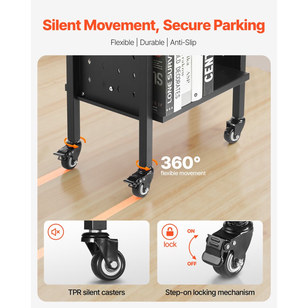guruló könyvtári könyveskocsi, 70 kg kapacitás, 45 x 33 x 88 cm könyvtári kocsi, kétoldalas L alakú polcok 50,8 mm-es zárható kerekekkel, könyveskocsi otthoni polcokhoz, irodába és iskolába, fekete | Építés és szerkezetek - Jovotech.hu