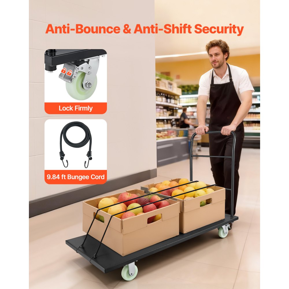nagy teherbírású platós kocsi, 907,18 kg teherbírás, ipari acél platós kocsi forgó kerekekkel és fogantyúval, platós kézi tolókocsi, könnyű tárolás, csomagmozgatáshoz, 1525 x 700 x 1090 mm