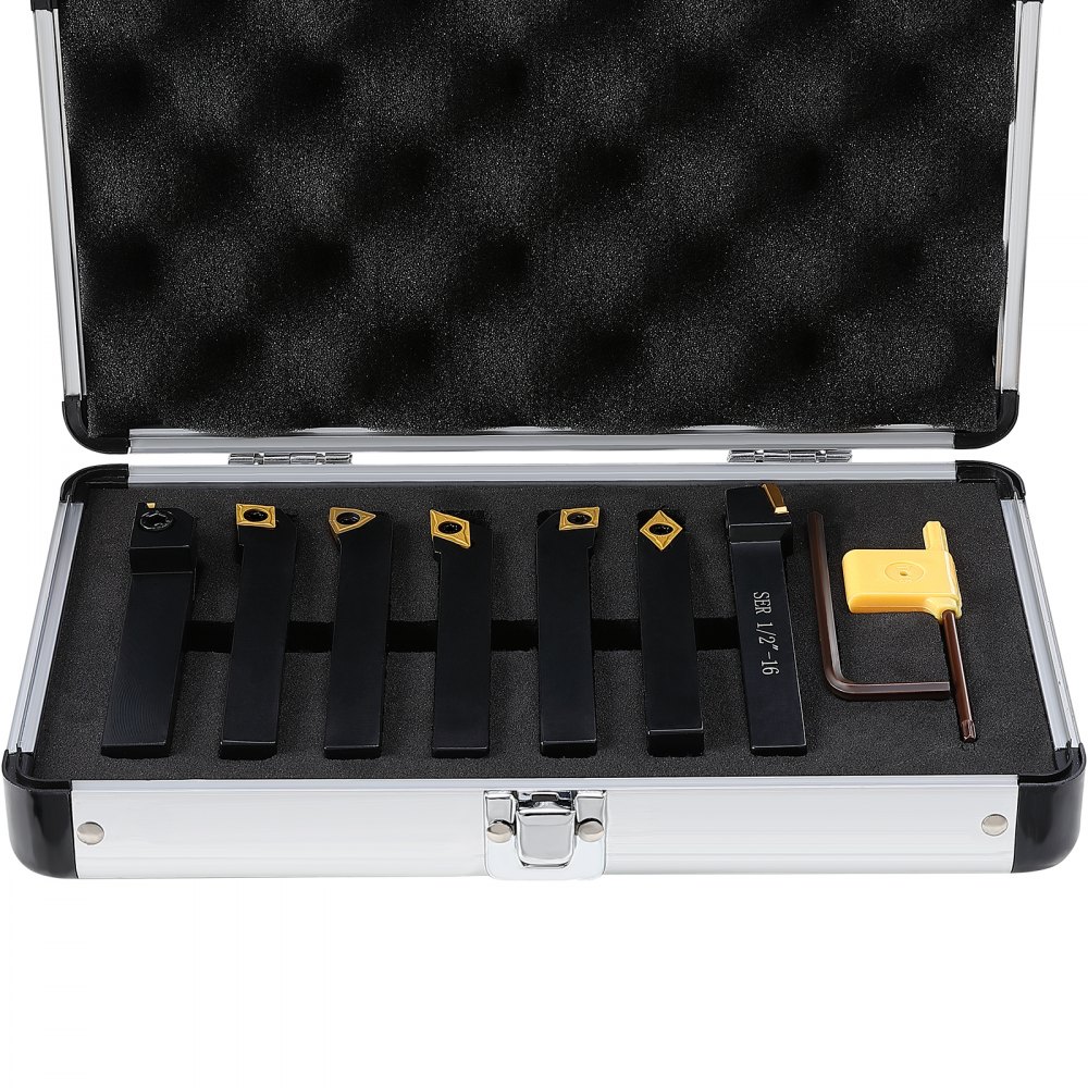Kényelmes csere: A 3/8"-os eszterga esztergaszerszámkészlet különféle típusú és méretű szerszámokkal való különféle csereigények kielégítésére szolgál. Tartalmaz egy 95 fokos külső esztergaszerszámot, egy 93 fokos külső esztergaszerszámot, egy külső menetvágót, egy hatlapfejű csavarkulcsot stb. Bőséges mennyiségben és könnyen cserélhető.