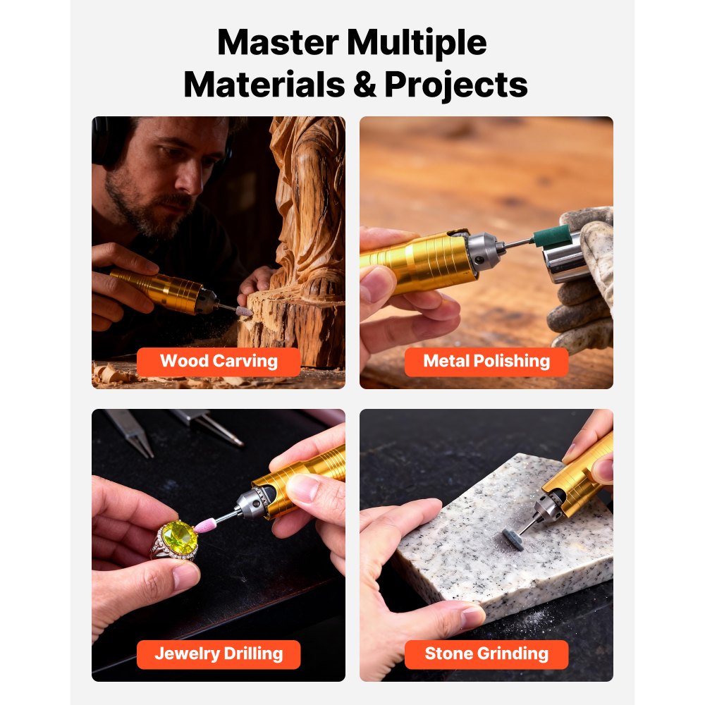 Többfunkciós használat: Ideális precíziós munkákhoz többféle anyagon, ez az elektromos flexibilis tengelyű csiszoló mind a szakemberek, mind a barkácsolók számára alkalmas. Könnyedén kezeli a fa csiszolását, a fém polírozását, az ékszerek fúrását és a kőcsiszolást hatékonyan és kontrolláltan.