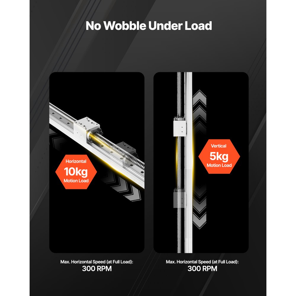 Nagy teherbírás: Ez a golyósorsós lineáris vezetős állványmozgató könnyedén támogatja mind a vízszintes, mind a függőleges mozgást. Vízszintesen akár 10 kg-ot, függőlegesen pedig 5 kg-ot is elbír.