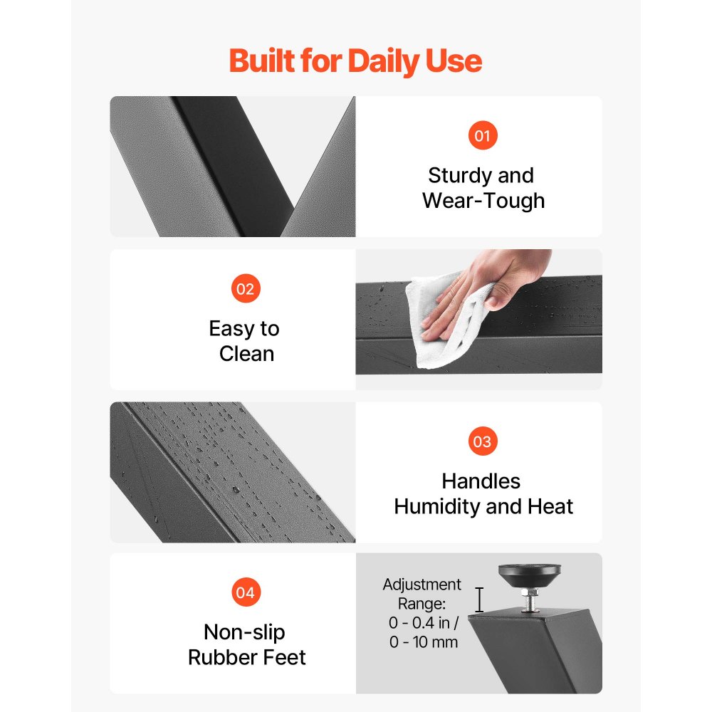 Tartós tervezés: Nagy szilárdságú szénacélból készült, minden asztalláb porszórt felülettel rendelkezik, amely ellenáll az ujjlenyomatoknak és könnyen tisztítható. 0-0,4 hüvelyk / 0-10 mm-es állítható szintezőlábbal rendelkezik, hogy az asztal könnyen szintezhető legyen.
