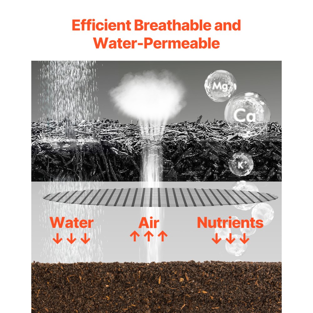 Lélegző és vízáteresztő: A szálközös kültéri járófelület kiváló légáramlást biztosít, lehetővé téve a víz és a tápanyagok eljutását a növények gyökereihez, biztosítva azok megfelelő táplálását. A lélegző kialakítás a talaj tömörödésének megakadályozásában is segít.