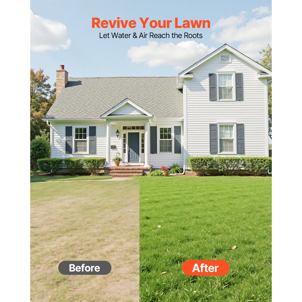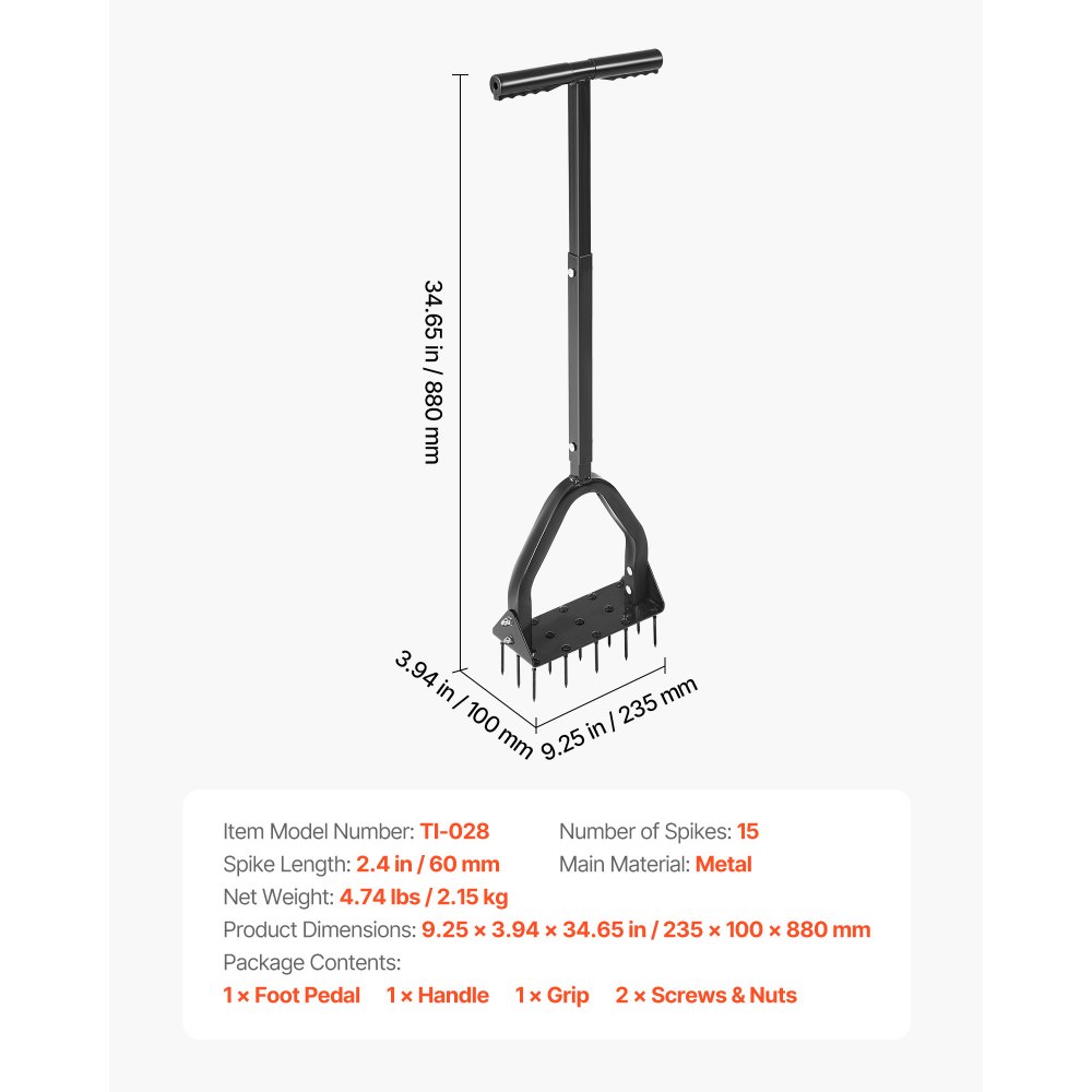 Erőfeszítést kímélő és hátkímélő: Búcsút inthet a fájó hátnak a kerti munka után. 85 cm-es teljes magasságával ez a kézi levegőztető lehetővé teszi, hogy függőleges helyzetben dolgozzon. A 34,78" x 5,12"-es extra széles talplemez lehetővé teszi, hogy testsúlyát használva könnyedén a talajba verje a tüskéket.