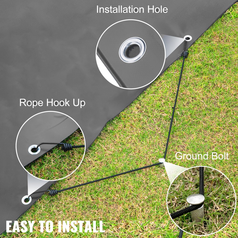【KÖNNYŰ TELEPÍTÉS】- A medencetakarókat a PVC-takaróhoz rögzített szerelőkötelek tartják a medencén keresztül. Az egyik vége levehető horgonycsavarokkal van rögzítve. A másik végén megfelelő horgonyok találhatók, amelyek lehetővé teszik a biztonsági takaró medencére való feszítését.
