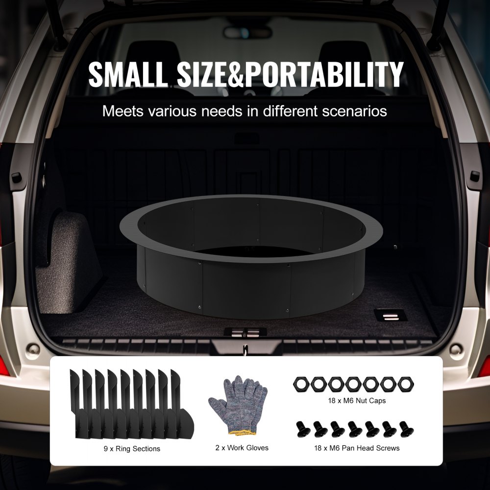 Nagy méret: A külső átmérő 45 hüvelyk (1143 mm), a belső átmérő 39 hüvelyk (990,6 mm), a magasság 10 hüvelyk (254 mm), a vastagság pedig 0,1 hüvelyk (2,5 mm), így bőséges külső helyet biztosít több tűzifa és faszén elhelyezésére, biztosítva a jobb légáramlást az alapos égés elősegítése és a tábortűz meggyújtása érdekében.
