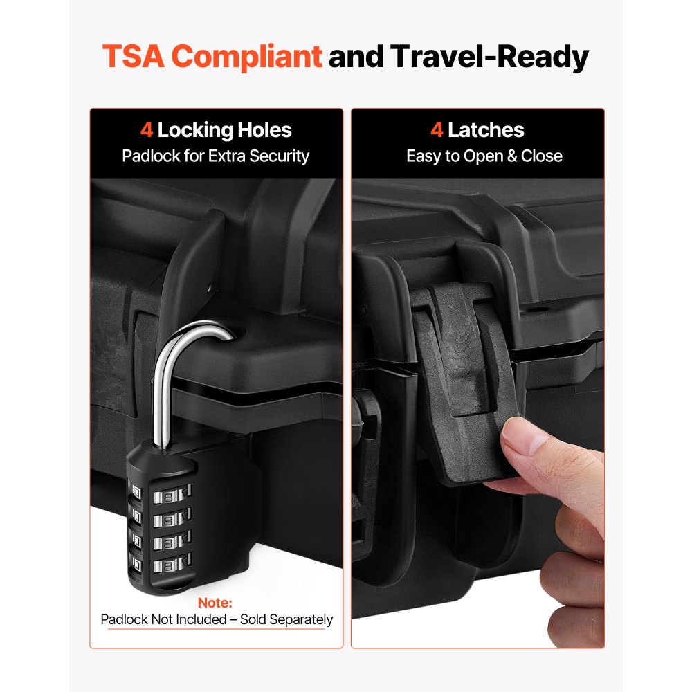 TSA-kompatibilis: Ez a puskatok megfelel a TSA szabványoknak, így alkalmas repülőgépen, vonaton és más közlekedési eszközökön való utazásra. Több retesszel felszerelve, a beépített zárlyukakhoz lakatokat is rögzíthet a fokozott biztonság érdekében (Megjegyzés: a lakatok nem tartozékok).
