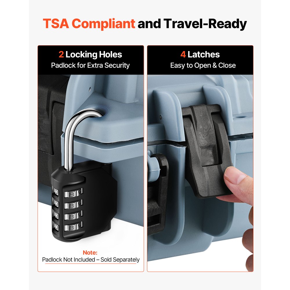 TSA-kompatibilis: Ez a puskatok megfelel a TSA szabványoknak, így alkalmas repülőgépen, vonaton és más közlekedési eszközökön való utazásra. Több retesszel felszerelve, a beépített zárlyukakhoz lakatokat is rögzíthet a fokozott biztonság érdekében (Megjegyzés: a lakatok nem tartozékok).