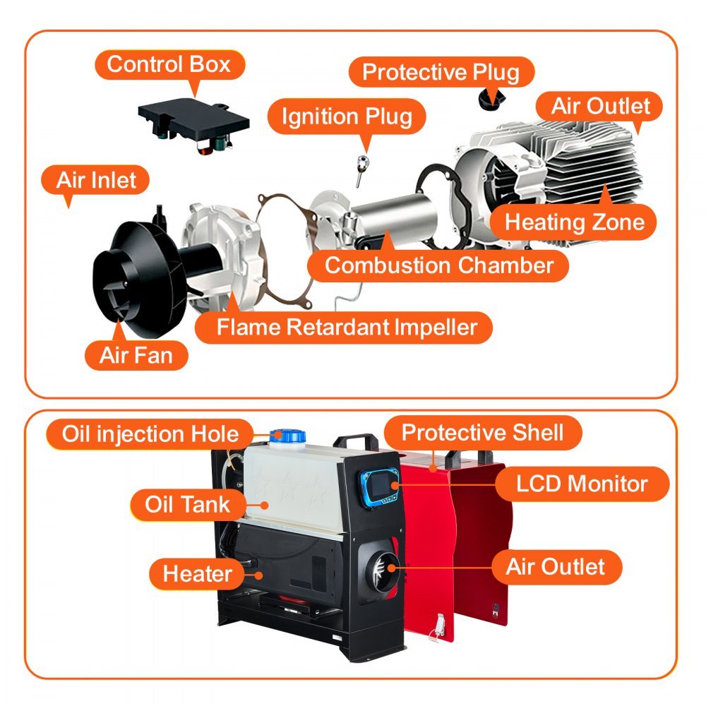 Tiszta LCD kijelző és kényelmes távirányító: A hálófülke fűtésének beindítása rendkívül egyszerű. A távirányítóval vagy az LCD panellel elindíthatja a hálófülke fűtését, vagy beállíthatja a hőmérsékletet 64℉-104℉/18℃-40℃ között. A 98 láb/30 m hosszú szabályozási távolság és az időzítő rendszer lehetővé teszi a motor és a fülke előzetes előmelegítését, így télen, amikor kinyitja a jármű ajtaját, élvezheti a meleget.