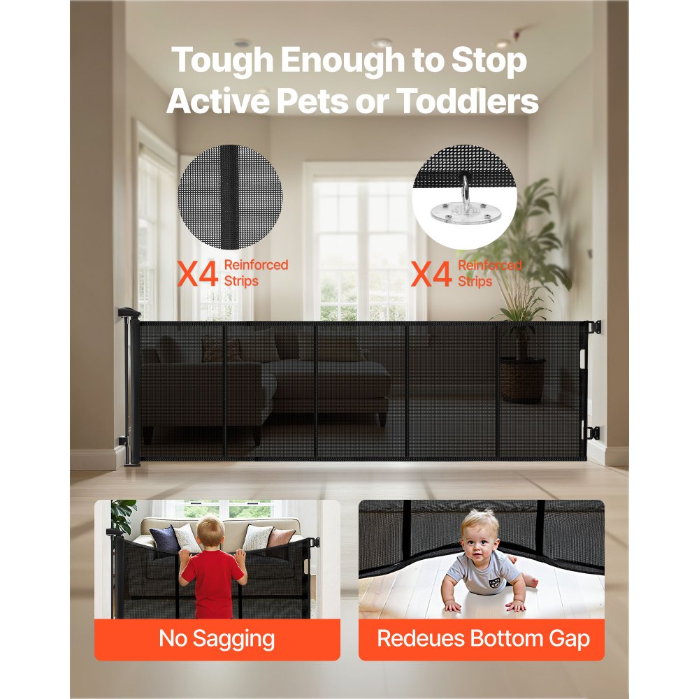 Behúzható Babakapu, 3100 mm-ig kihúzható, extra széles, 795 mm magas, megerősített üvegszálas csíkokkal, megakadályozza a bemászást, Hálós kutyakapu teraszokra, ajtókhoz, garázsokhoz, beltéri, fekete | Mezőgazdasági és erdészeti gépek - Jovotech.hu