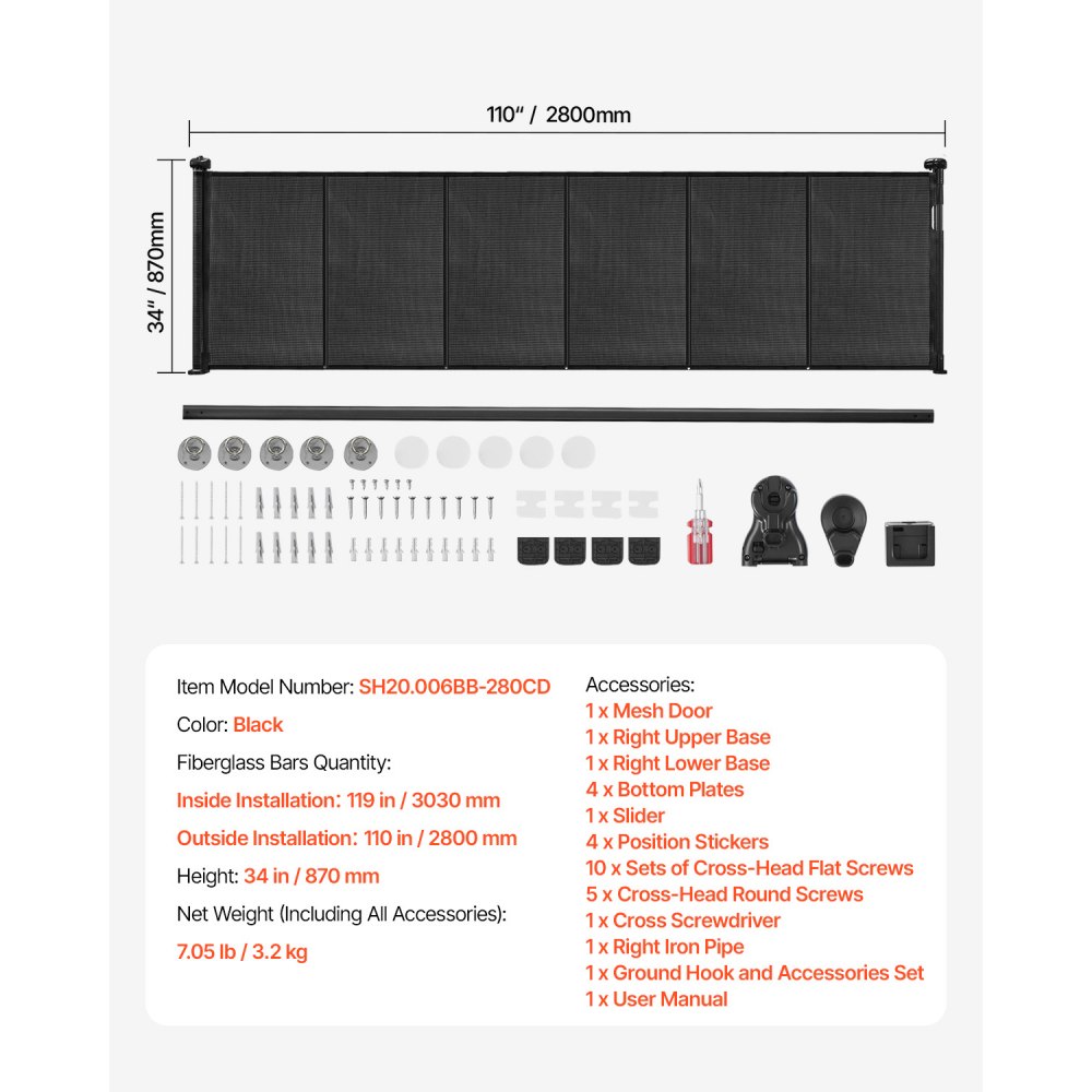 Behúzható Babakapu, 870 mm Magas, Akár 2800 mm Szélesre Kihúzható, Behúzható Kapu Gyerekeknek vagy Háziállatoknak, Hálós Anyag, Könnyen Felszerelhető Beltéri Lépcsőkre, Ajtóbejáratokra, Folyosókra, Játszószobákba, Fekete | Mezőgazdasági és erdészeti gépek - Jovotech.hu