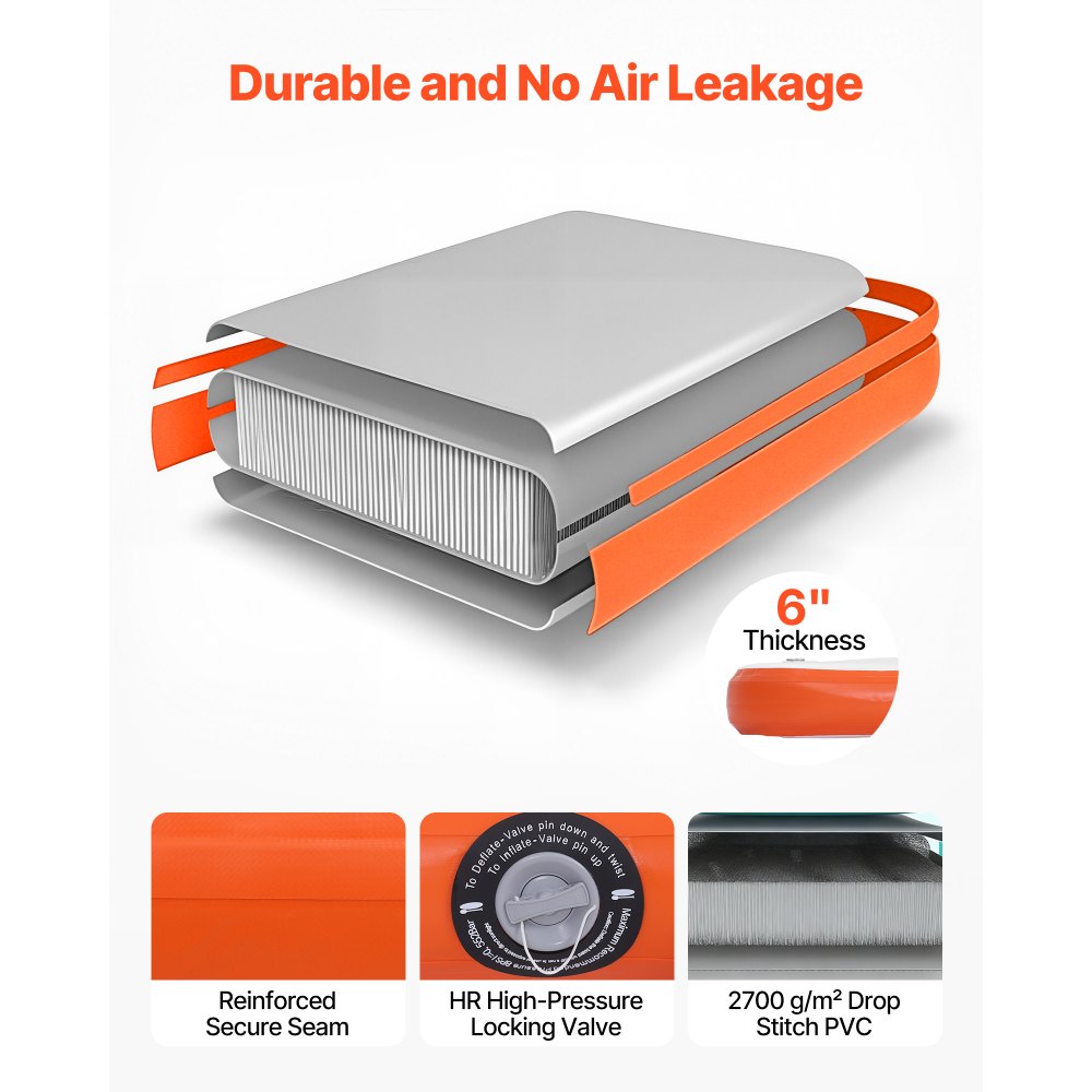 Stabil levegőtartás: 2700 g/㎡ varrott PVC-ből készült, 152,4 mm vastag, így stabil tartást biztosít állás, ugrás és játék közben. A megerősített varratok növelik az erőt. A HR nagynyomású zárószelep segít fenntartani a levegőt hosszabb használat esetén.