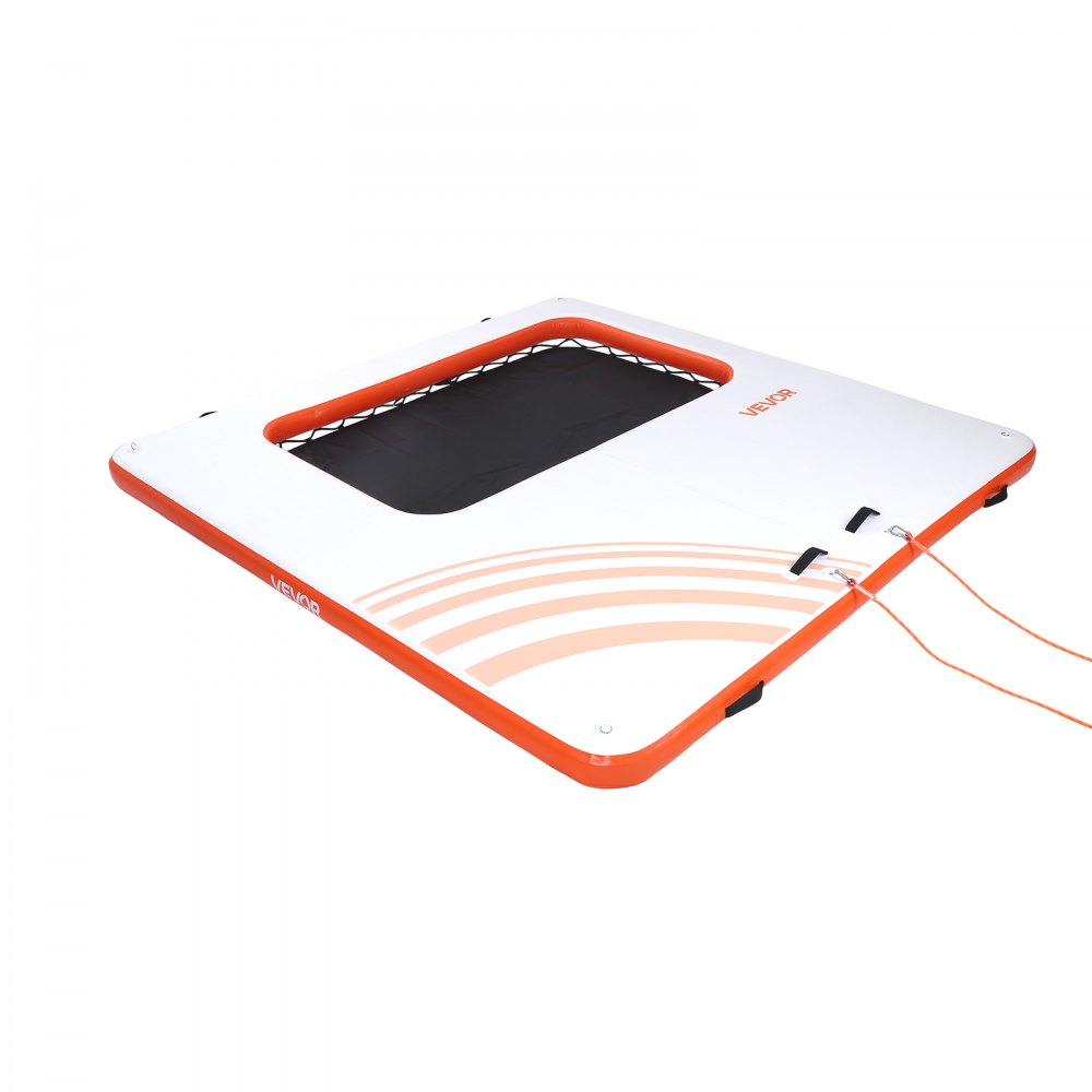 Tágas felfújható úszó dokk: Ez a felfújható dokk 10 x 10 x 0,5 láb / 3,05 x 3,05 x 0,15 m méretű, 6,5x4 láb méretű hálós medencével rendelkezik, 6-8 fő befogadására alkalmas, a szálcsiszolt, texturált felület tapadást biztosít a talp alatt, a levehető, 4 lépcsős kötéllétra pedig megkönnyíti a fel- és leszállást.