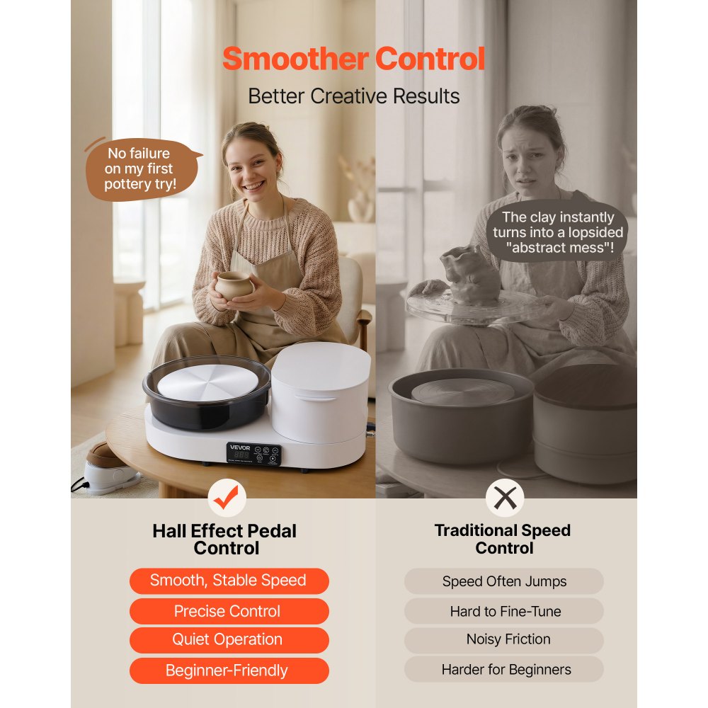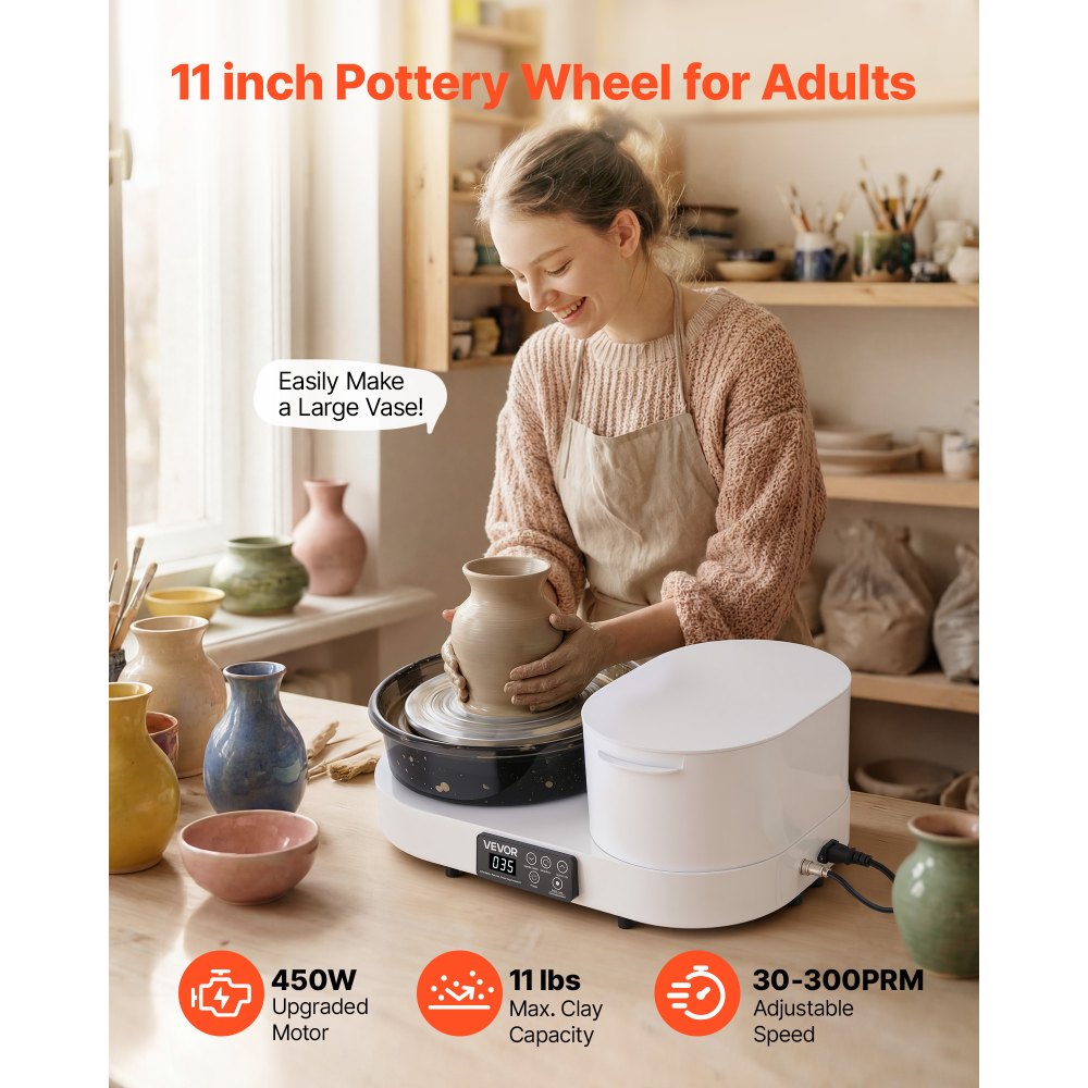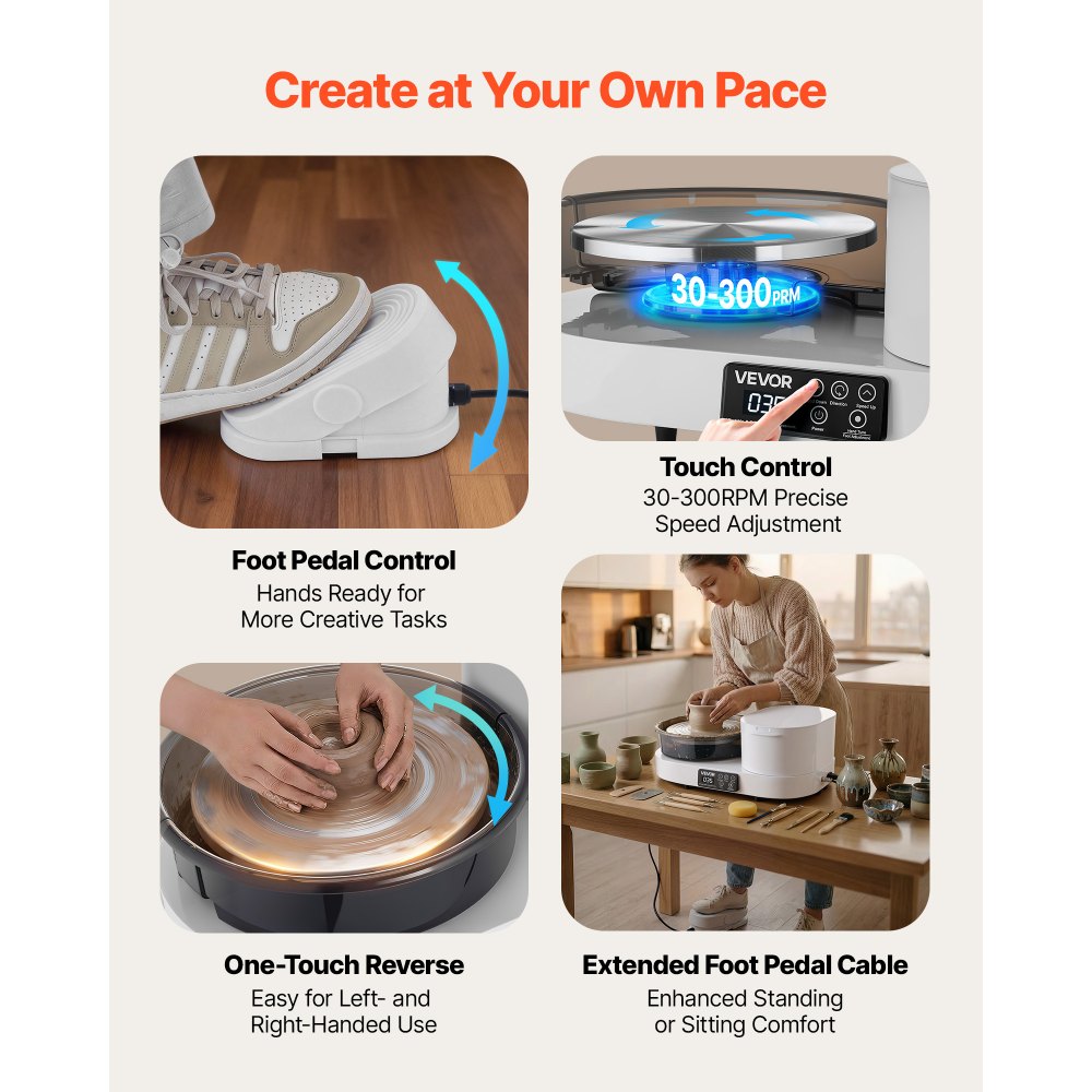 agyagkorong felnőtteknek, 28 cm-es alumínium forgótányér, 450 W-os elektromos asztali agyagkorong lábpedállal, 30-300 fordulat/perc állítható sebesség, alumínium test, kezdőknek, barkács agyagművészeti kézművesség, fehér | Technológia - Jovotech.hu