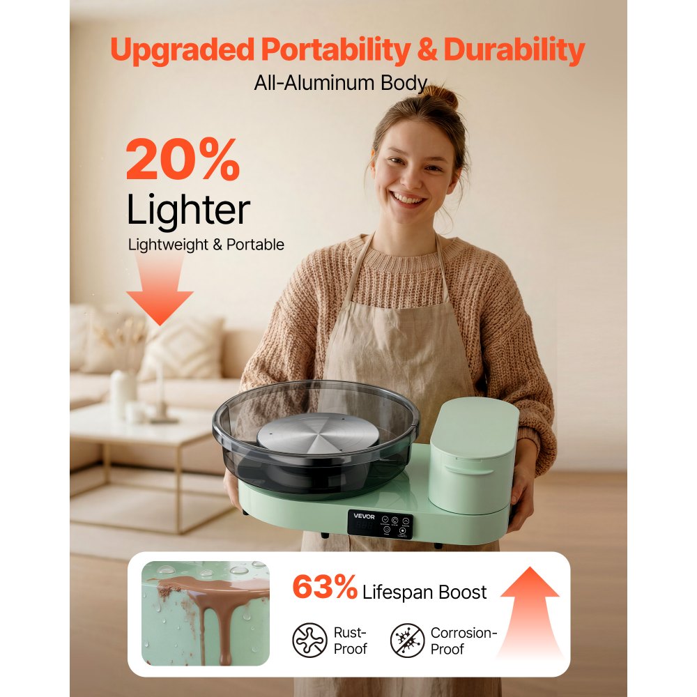 agyagkorong felnőtteknek, 36 és 28 cm-es lemezjátszók, 450 W-os elektromos asztali agyagkorong lábpedállal, 30-300 fordulat/perc állítható sebesség, alumínium test, kezdőknek, barkács agyagművészeti kézművesség, zöld | Technológia - Jovotech.hu