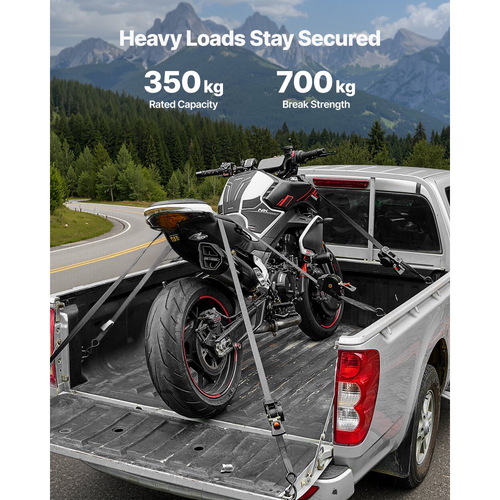 Kőkemény terhelhetőség: Ez a racsnis heveder 320 kg-os teherbírást és 680 kg-os szakítószilárdságot biztosít, így a felszerelésed a megállás és az ütések során is a helyén marad. Tökéletes választás kerékpárok, szerszámok és terjedelmes dobozok szállításához.