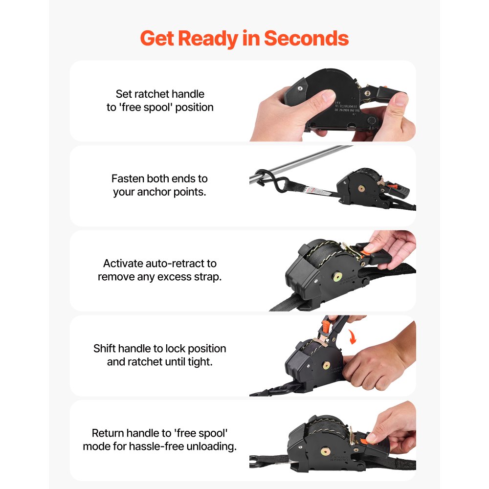 visszahúzható racsnis hevederek, 25,4 mm x 4,9 m, S-kampós rögzítőhevederek, 700 kg szakítószilárdság, hordtáska, rögzítőracsnis mozgáshoz, utánfutókhoz, motorkerékpárokhoz, kajakokhoz, autótetőhöz, 4 darabos csomag | Világítás - Jovotech.hu
