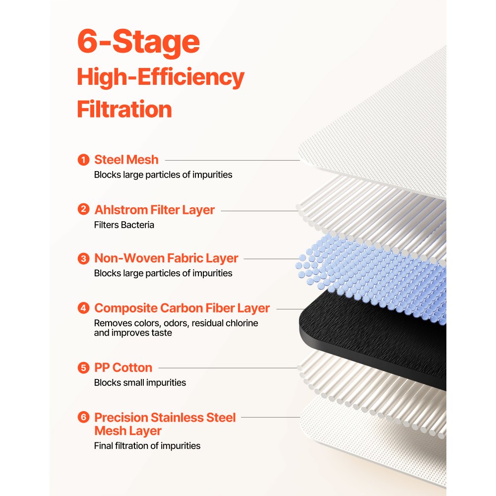 Hatékony szűrés: Szénszálas és kiváló minőségű szűrővel felszerelt bőrápoló szűrő hatékonyan eltávolítja a klór és a klóramin 95%-át, és hatékonyan kiszűri a 0,01 mikron méretű szennyeződéseket, tisztább vizet biztosítva a bőrápoláshoz. Megjegyzés: 5–38 °C közötti vízhőmérséklethez alkalmas. A magasabb hőmérséklet károsíthatja a belső szerkezetet és szivárgást okozhat. Megfelelő víznyomás-tartomány: 0,1–0,4 MPa