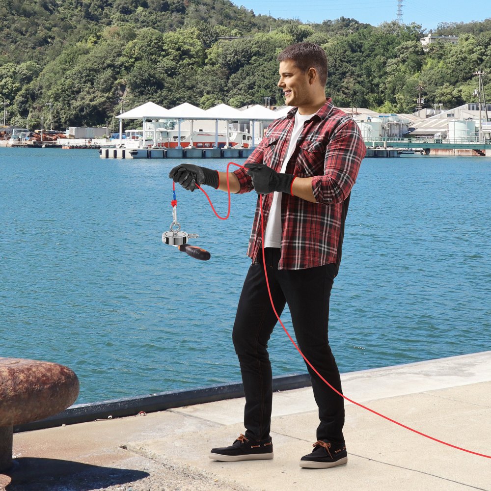 Kétoldalas erős mágnes: Prémium N35 neodímium anyagból készült, a kétoldalas horgászmágnes kialakítása jelentősen javítja a funkcionalitást, akár 454 kg maximális húzóerőt biztosítva. Könnyedén visszaszerezheted az elejtett kulcsokat vagy a víz alatti kincseket.