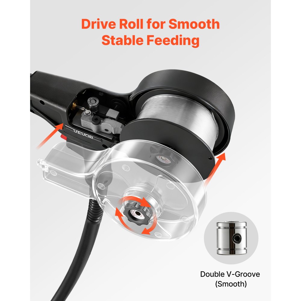 Sima és stabil huzaladagolás: 0,8-0,9 mm-es sima, dupla V-horonyos hajtógörgővel rendelkezik az egyenletes, sima huzaladagolás érdekében, az ergonomikus fogantyú pedig kényelmesen illeszkedik a kézbe a jobb irányíthatóság és a stabil működés érdekében.