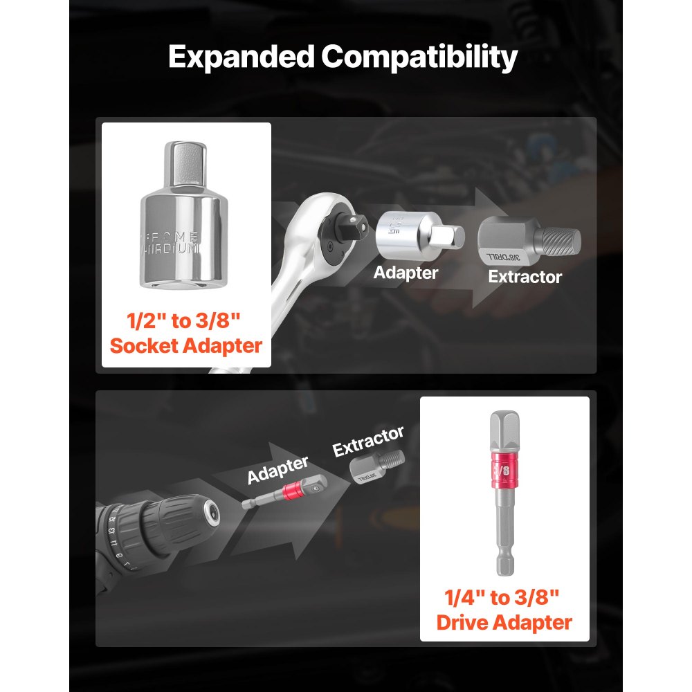 Beragadt és sérült rögzítőelemek kihúzása: A kihúzókészlet olyan letört, rozsdás, lekerekített vagy törött csavarok, anyák és csavaranyák kihúzására szolgál, amelyekkel a hagyományos szerszámok nem tudnak megbirkózni. Ideális olyan javításokhoz, ahol a rögzítőelemek beszorultak, részben eltörtek vagy mélyen beszorultak.
