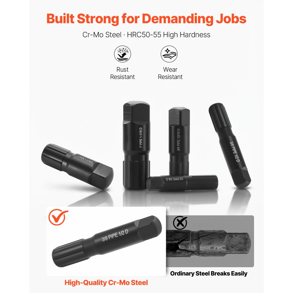 Törött csőmenetek eltávolítására tervezve: Ez a csőkihúzó készlet eltávolítja a törött, lecsupaszodott vagy beszorult csődugókat és szerelvényeket a cső belsejéből, ahová külső villáskulcsok és dugókulcsok nem férnek hozzá – ideális vízvezeték-javítási és karbantartási munkákhoz.