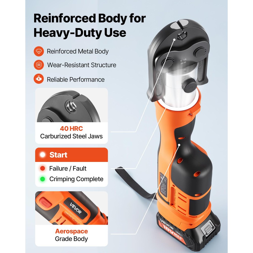 Széleskörű alkalmazási lehetőségek: Alkalmas csőszereléshez és javításhoz lakossági vízvezeték-szerelési és ipari csővezeték-projektekben. Kompatibilis a 32KN szabványos préspofákkal - Ha más típusú csöveket kell préselnie, kérjük, külön vásárolja meg a megfelelő préspofákat.