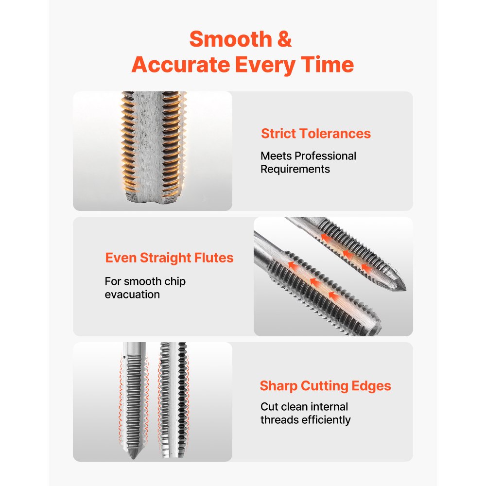 Több fémmel kompatibilis: Ezek a menetfúrók és matricák szénacéllal, öntöttvassal, alumíniumötvözetekkel, sárgarézzel, rézzel és rozsdamentes acéllal is használhatók, így ideálisak garázsjavításokhoz, műhelyi feladatokhoz és számos alkalmazási területhez.