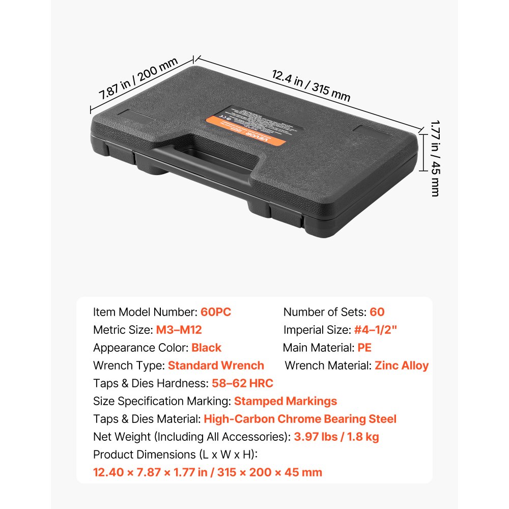 menetfúró és menetmetsző készlet, 60 darabos metrikus M3-tól M12-ig és SAE méretekben, durva és finom menetű menetfúrókkal és menetmetszőkkel, kulccsal, hordtáskával és teljes tartozékokkal, menetvágáshoz és újramenetvágáshoz | Kéziszerszámok - Jovotech.hu
